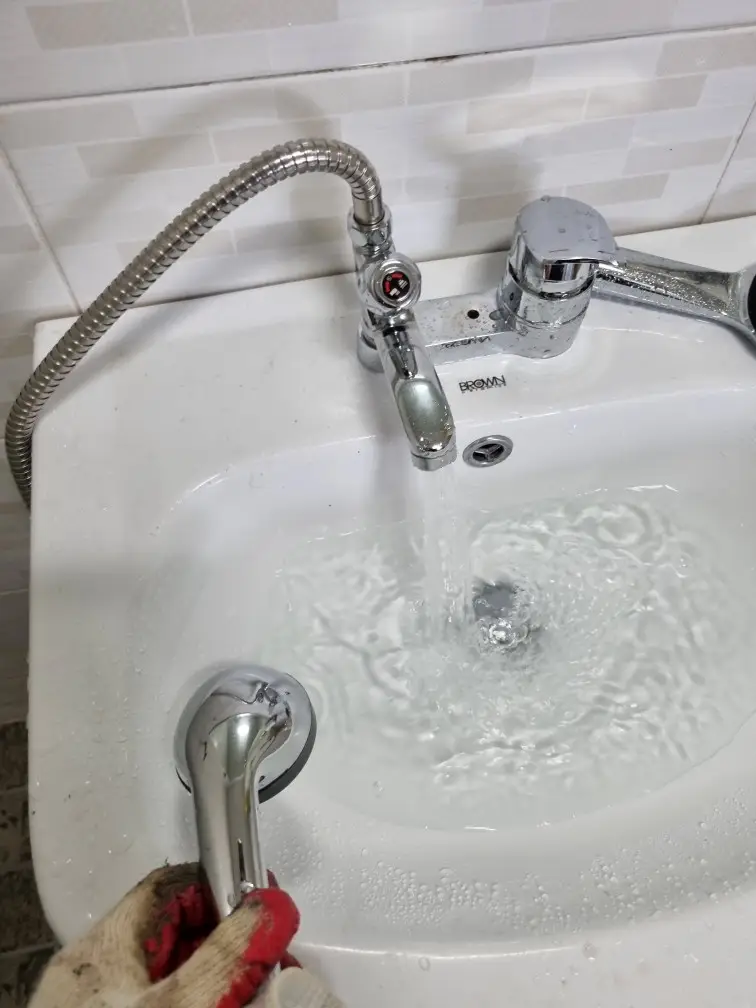샤워겸용 수전 교체가 필요한 가장 흔한 증상은 샤워와 수전 토출구에서 동시에 물이 나오는 것입니다. 전환 레버를 당겨 샤워 모드로 바꿔도 수전에서도 계속 물이 흐르면 전환 밸브가 고장 난 것입니다. 이렇게 되면 수압이 분산되어 샤워 수압이 약해지고 물 낭비도 심합니다.